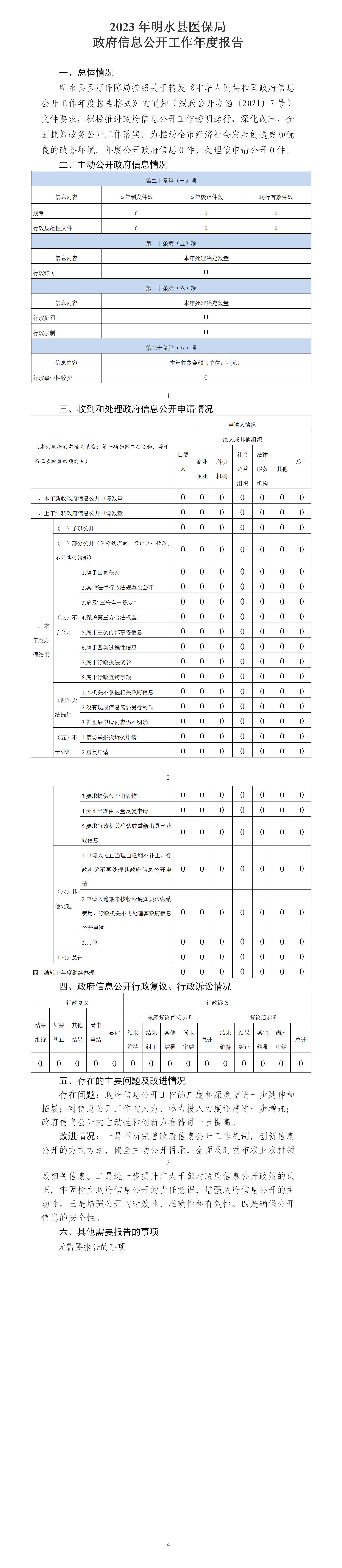2023年明水县医保局政府信息公开年度报告