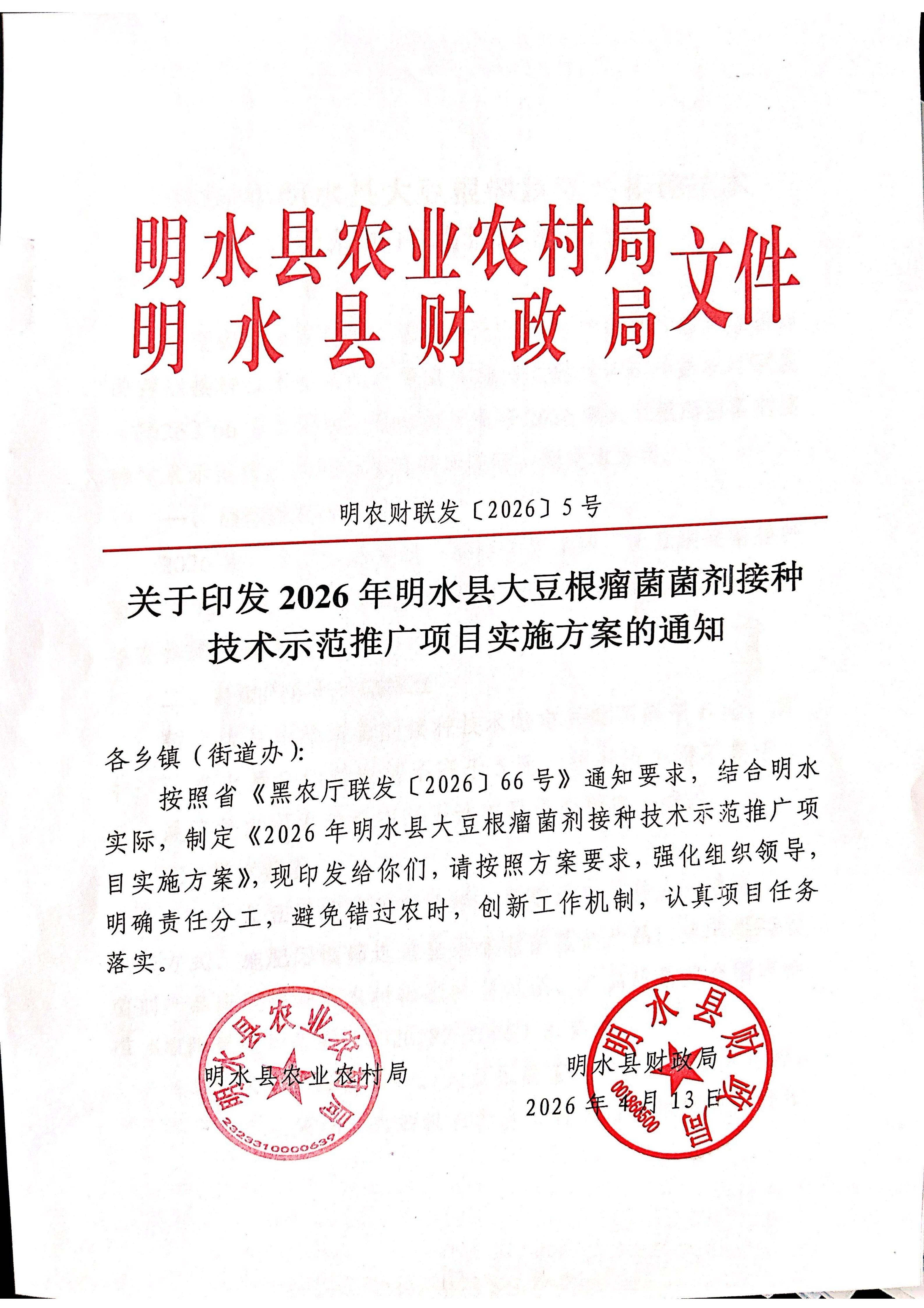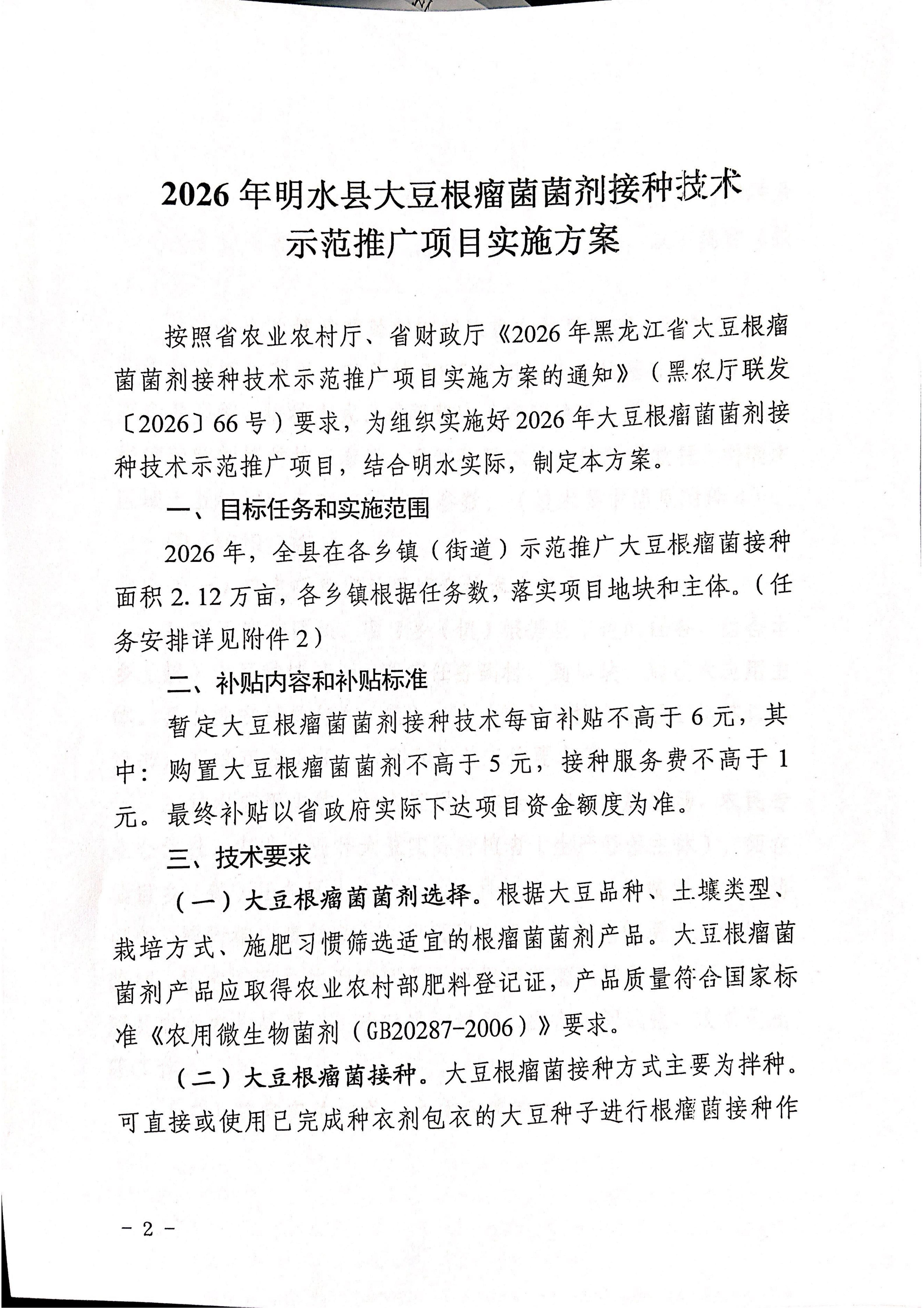 【文字解读】《2026年明水县大豆根瘤菌菌剂接种技术示范推广项目实施方案》政策解读
