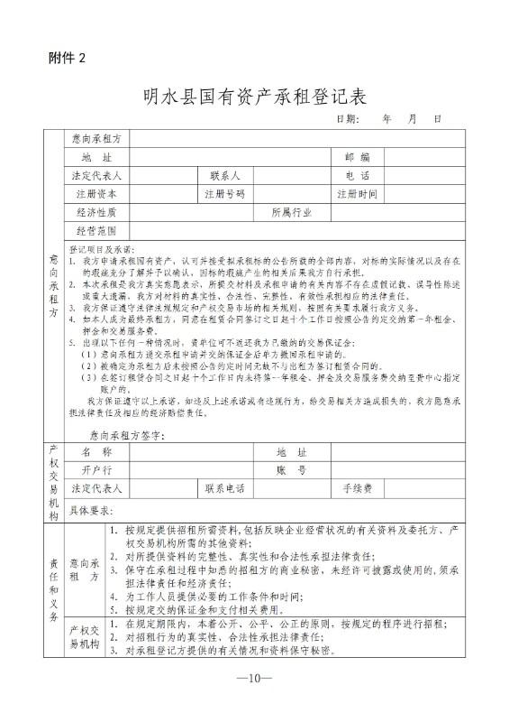 2.明水县国有资产承租登记表