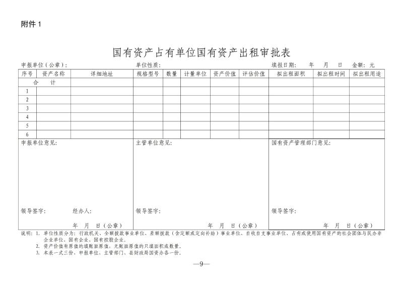 附件:1.国有资产占有单位国有资产出租审批表