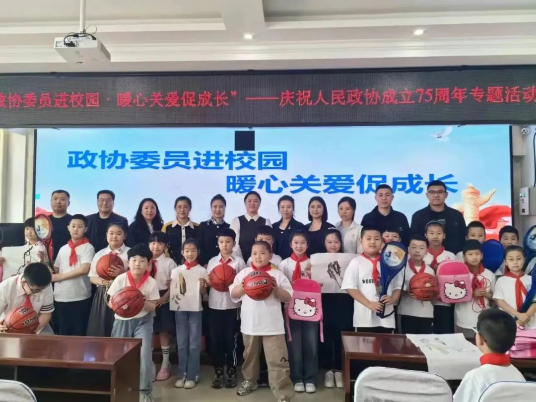 5月28日,明水县政协组织部分政协委员在明水县第一小学开展“政协委员进校园·暖心关爱促成长”——庆祝人民政协成立75周年专题活动。县政协经科委及各界委员、第一小学师生代表参加活动。