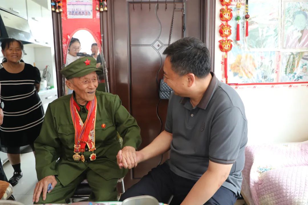 刘宝国还深入复员军人陈新贵、姜新富家中进行走访慰问,与老人深入交谈,详细询问他的日常生活及身体状况,倾听老兵讲述抗美援朝故事,感谢他为党和国家作出的贡献,并向他致以节日祝贺。刘宝国叮嘱相关街道、部门要时刻关心关注抗战老兵的生活情况,及时帮助他们解决实际困难,让他们感受到党和政府的关怀与温暖。