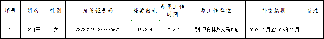 注:养老保险行政部门认定前公示,为了保护个人隐私,公示中身份证号码应部分隐藏(例:2323311976****0024)