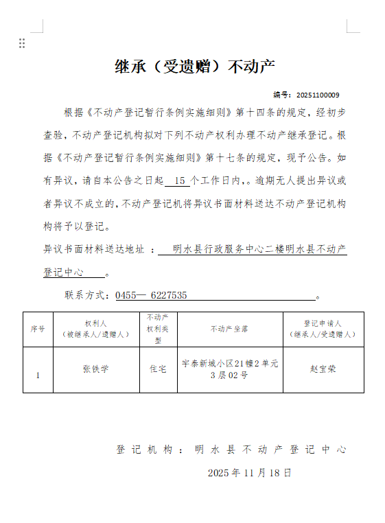 继承不动产登记公告(赵宝荣)